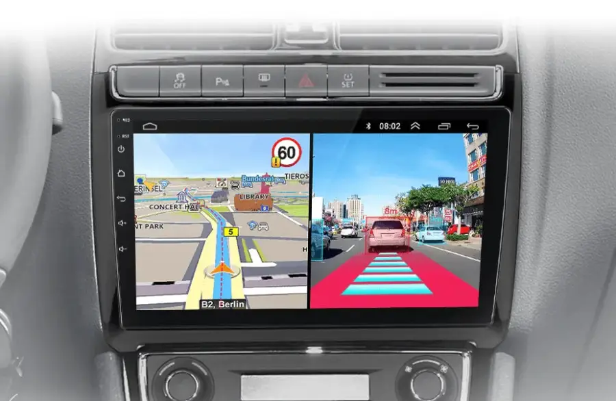 Multitasking és biztonság A rádiónak köszönhetően egyszerre használhatja a navigációt és egyéb alkalmazásokat, például zenét hallgathat vagy használhatja az ADAS DVR funkciót. Ez kényelmesebb használatot és nagyobb funkcionalitást tesz lehetővé. Az autó tolatásakor a rádió automatikusan a parkolóvonalakkal ellátott tolatóképernyőre kapcsol a nagyobb biztonság érdekében.